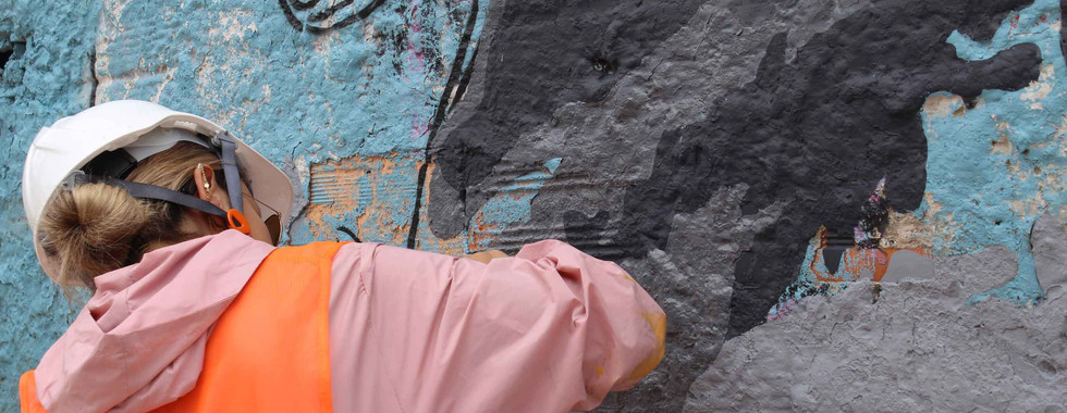 Para ninguno de los stencilerxs es un secreto que un muro que en su estructura tenga un pañetado liso o por lo menos que su superficie sea homogénea es un beneficio a la hora de poder pintar la plantilla y esto no es solo por la comodidad al momento de ejecutar, sino que también le brinda una resolución más exacta y fiel de lo que queremos representar con la plantilla.
