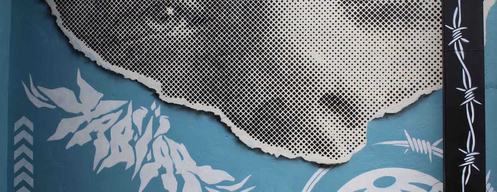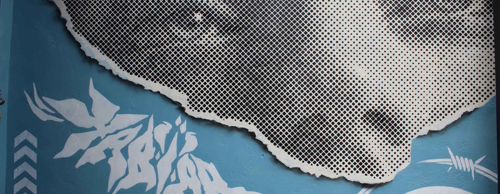 La ejecución no ha sido fácil y eso hemos podido presenciar, Trust ha pintado dos veces su plantilla, esto en procura de obtener el resultado que esperaba desde la concepción gráfica de su boceto, casi tan milimétrico como los puntos de sus semitonos, este artista se ha tomado la libertad artística de pintar dos veces su plantilla sobre la misma superficie, esto en parte como una corrección y búsqueda constante del mejor resultado.
